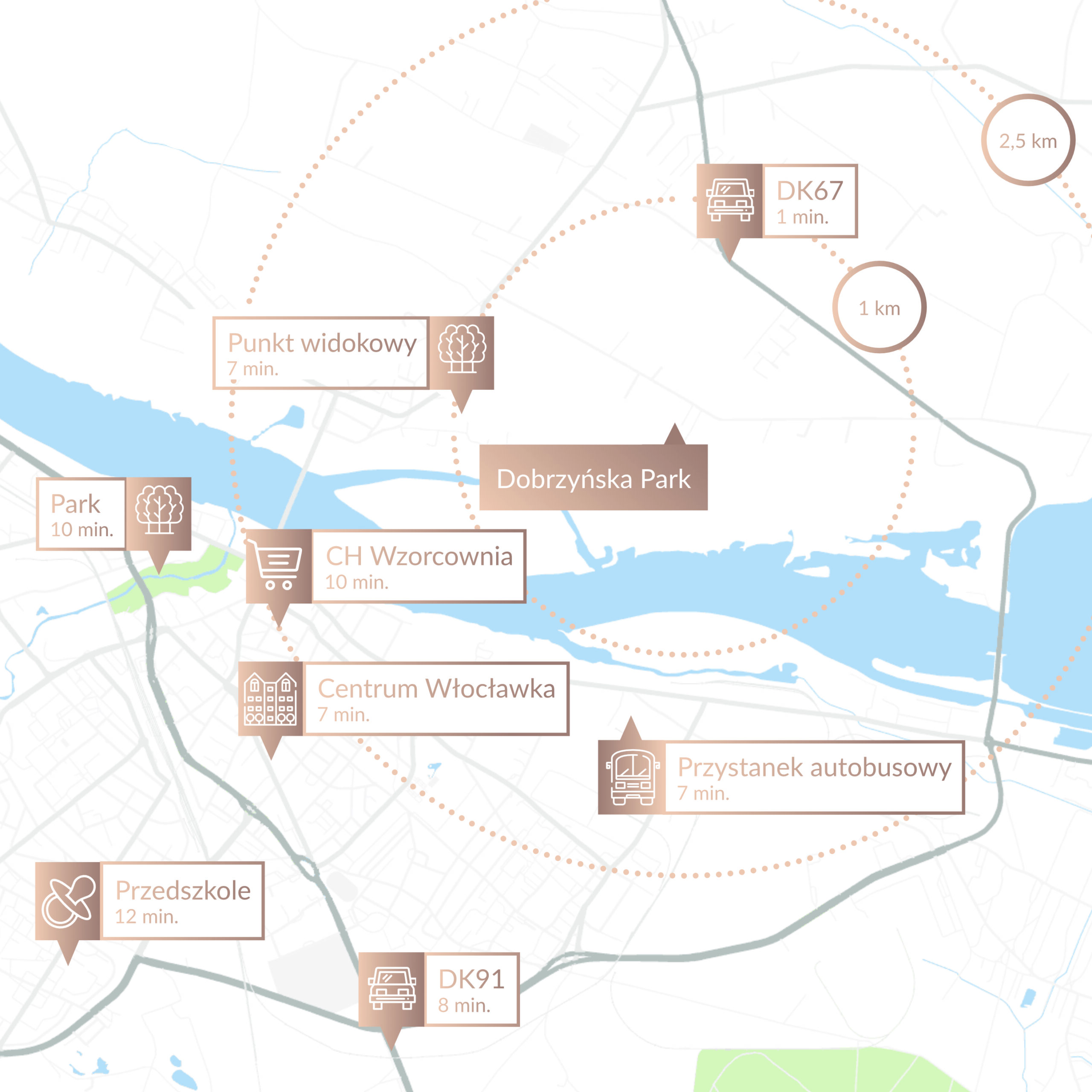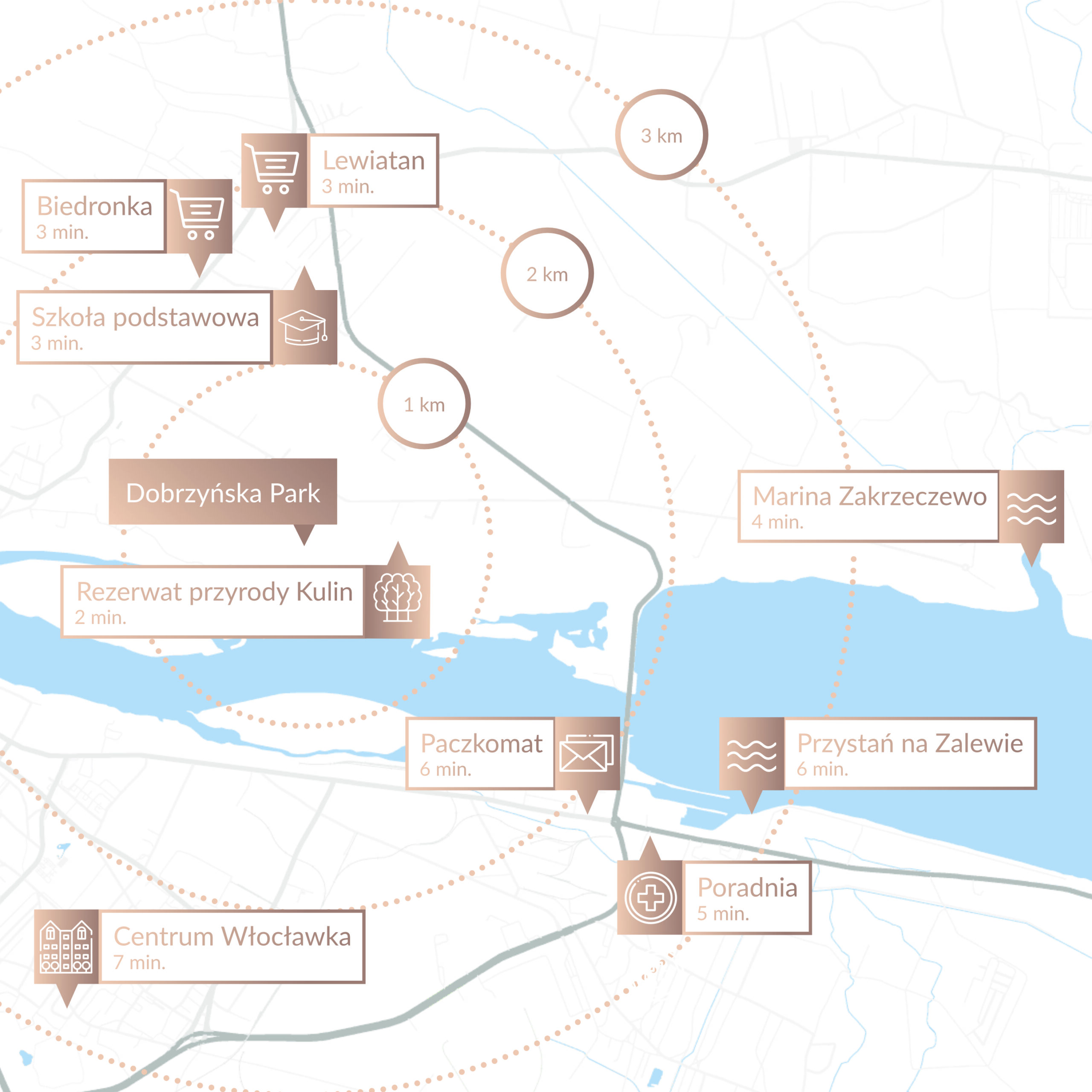 Dobrzyńska Park to propozycja dla osób poszukujących komfortowego zacisza w spokojnej, zielonej okolicy, bez rezygnacji z miejskiej wygody. Kameralne, przytulne osiedle składa się z 28 nowoczesnych domów, położonych w zielonej części Włocławek, tuż przy Rezerwat Przyrody Kulin.