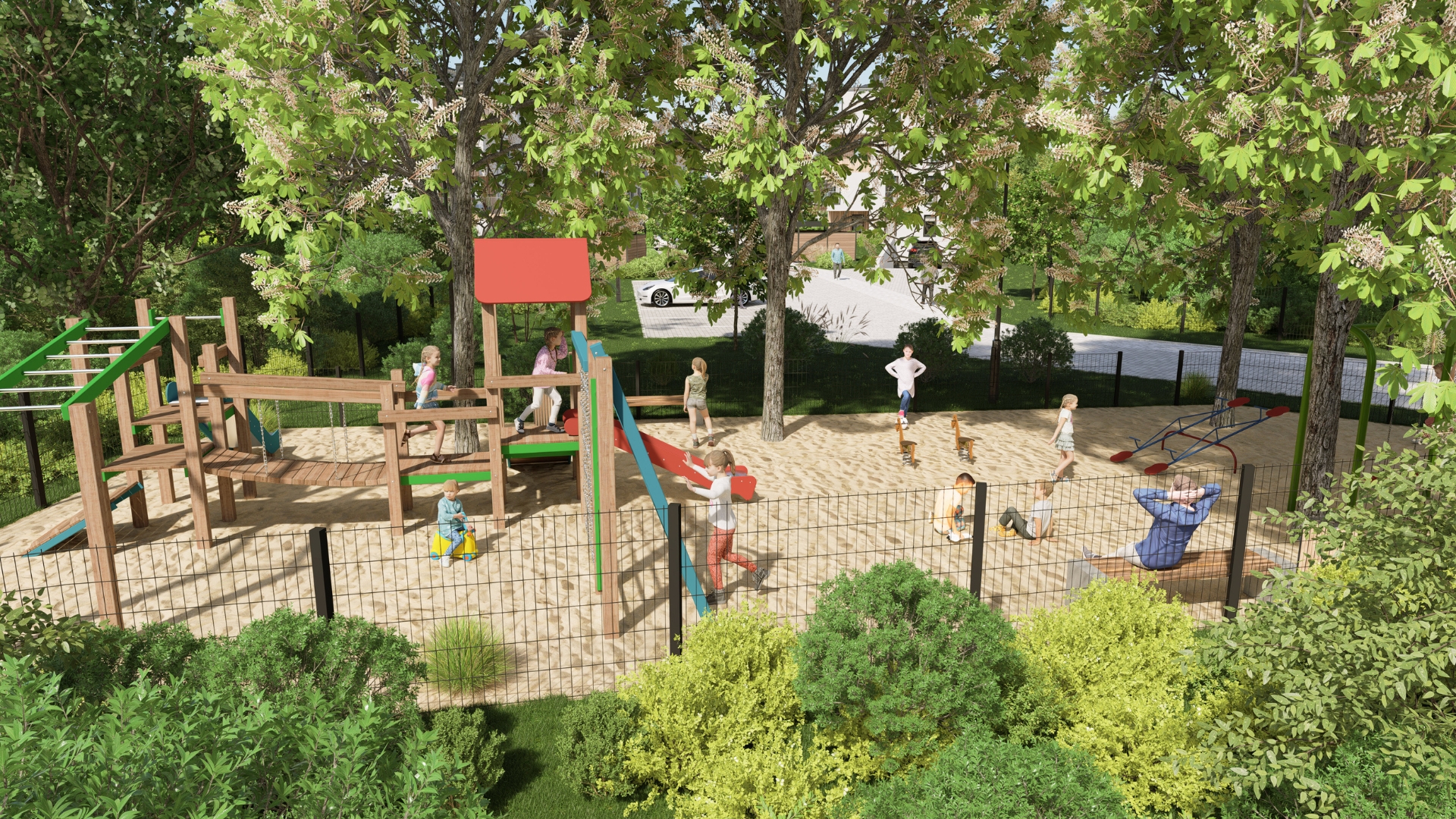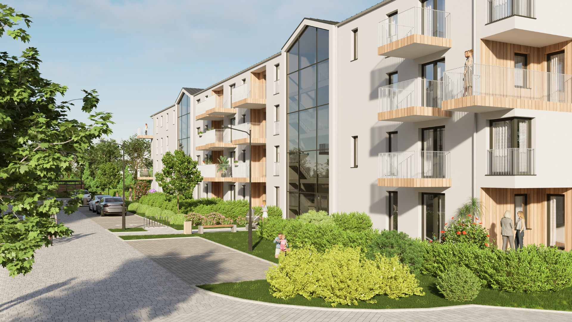 Bezpośrednie sąsiedztwo parku sprzyja spacerom, aktywności na świeżym powietrzu oraz codziennemu relaksowi. Zieleń wokół budynków podnosi komfort życia i tworzy atmosferę spokoju po intensywnym dniu.